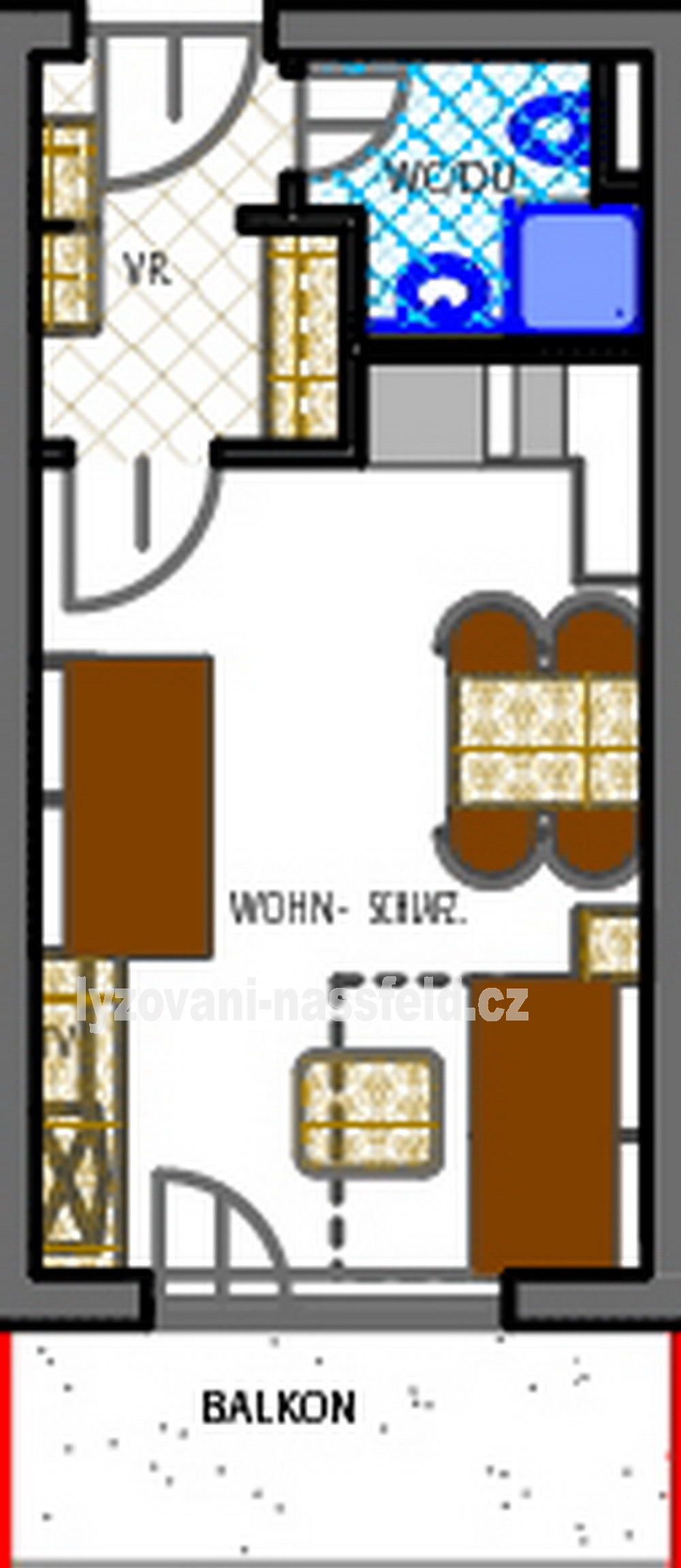 Apartmán Edith Typ A, 30m2, Základní počet osob 2, maximum 4 osoby