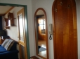 Předsíň s vestavěnou skříní, obývací místnost s kuchyňským koutem. Z obývací stěny se sklopí velká manželská postel, dále možnost rozložit gauč, balkón. Koupelna se sprchovym koutem a toaletou.
